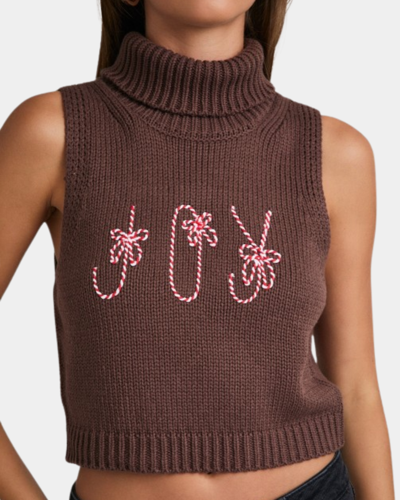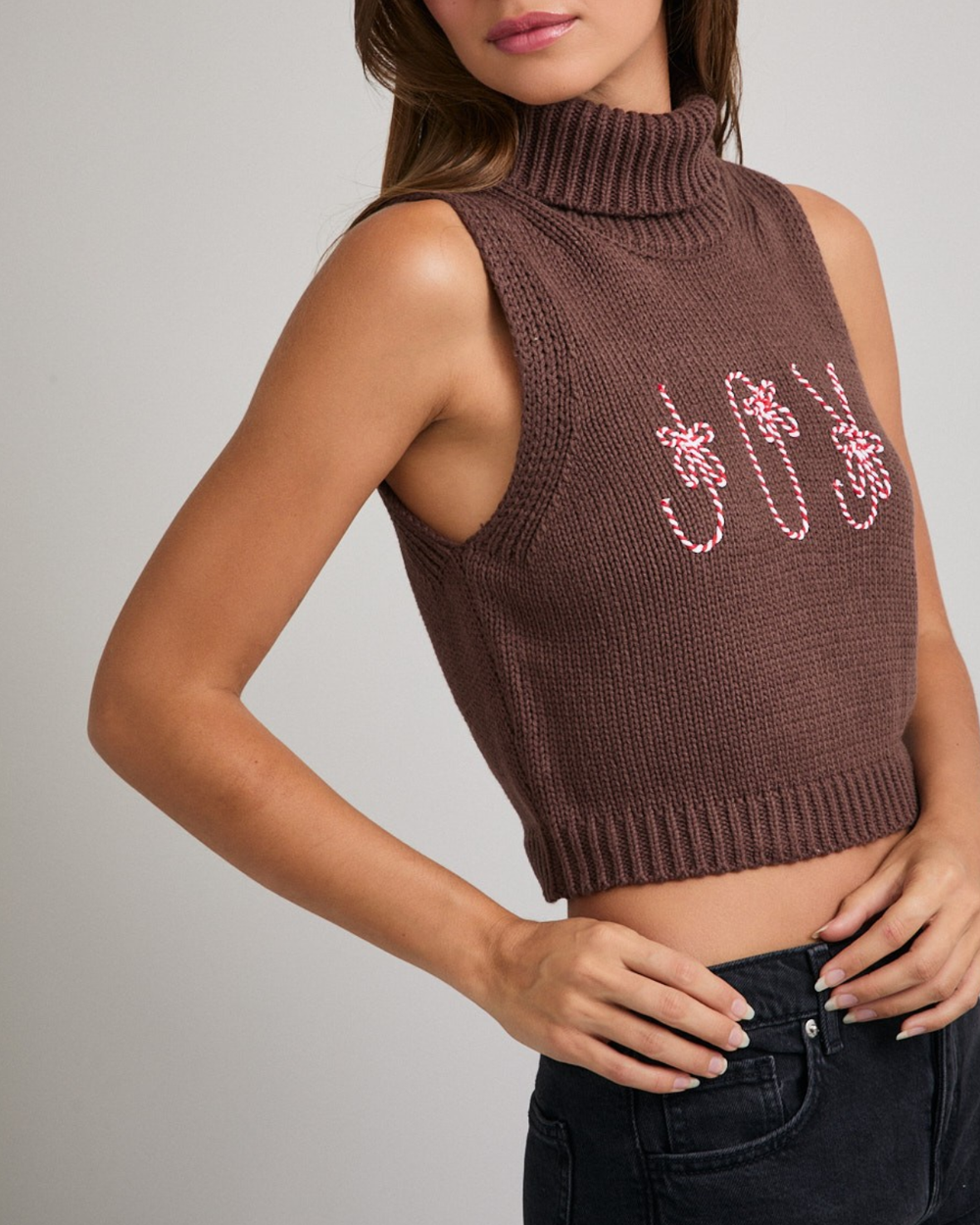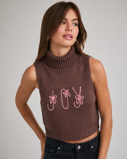 Effortless layering just got more fun! This sleeveless sweater top in rich brown is your new go-to piece for mixing and matching. Throw it over a tee, pair it with a collared shirt, or wear it solo—the Joy top adapts to your style. Perfect for those days when you want cozy vibes without the bulk.