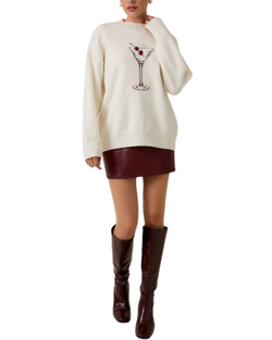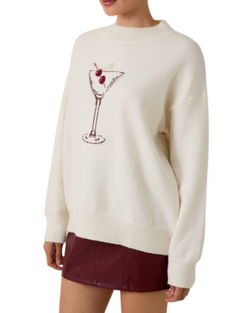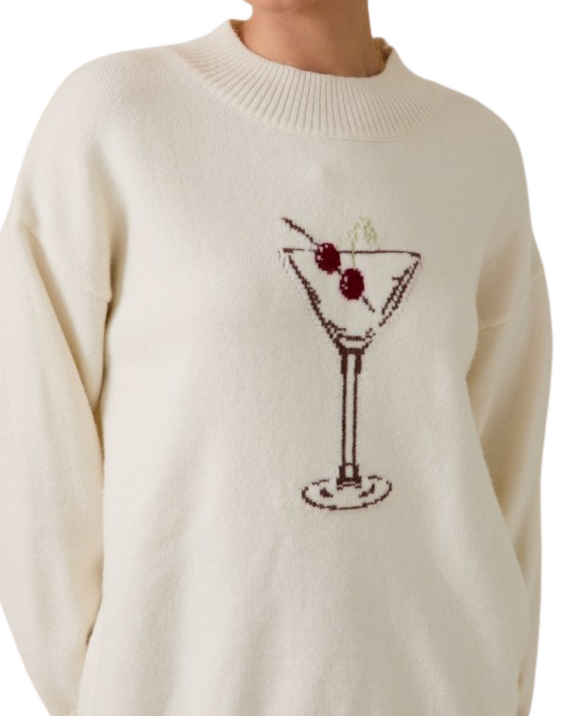 Cozy up in the Cherry Martini Sweater—cream-colored comfort with a cheeky twist! Perfect for adding a splash of fun to chilly days while keeping you snug and stylish.
