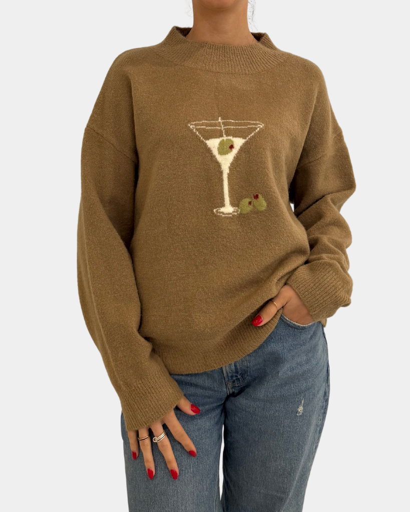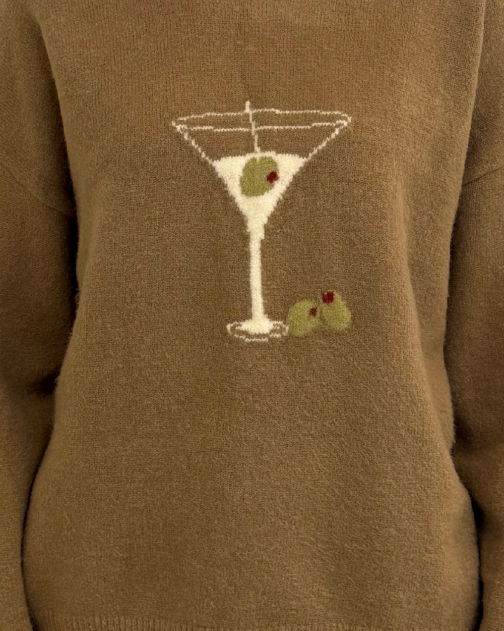 Shake up your style with this mocha Martini Sweater—a fun, flirty piece that brings a dash of sophistication and whimsy to your closet. Perfect for nights out or casual gatherings, it's the sweater that always knows how to have a good time.