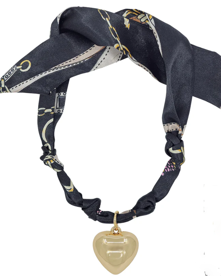 The adorable necklace features a knotted scarf fabrication with a charm attached. On trend and so chic!