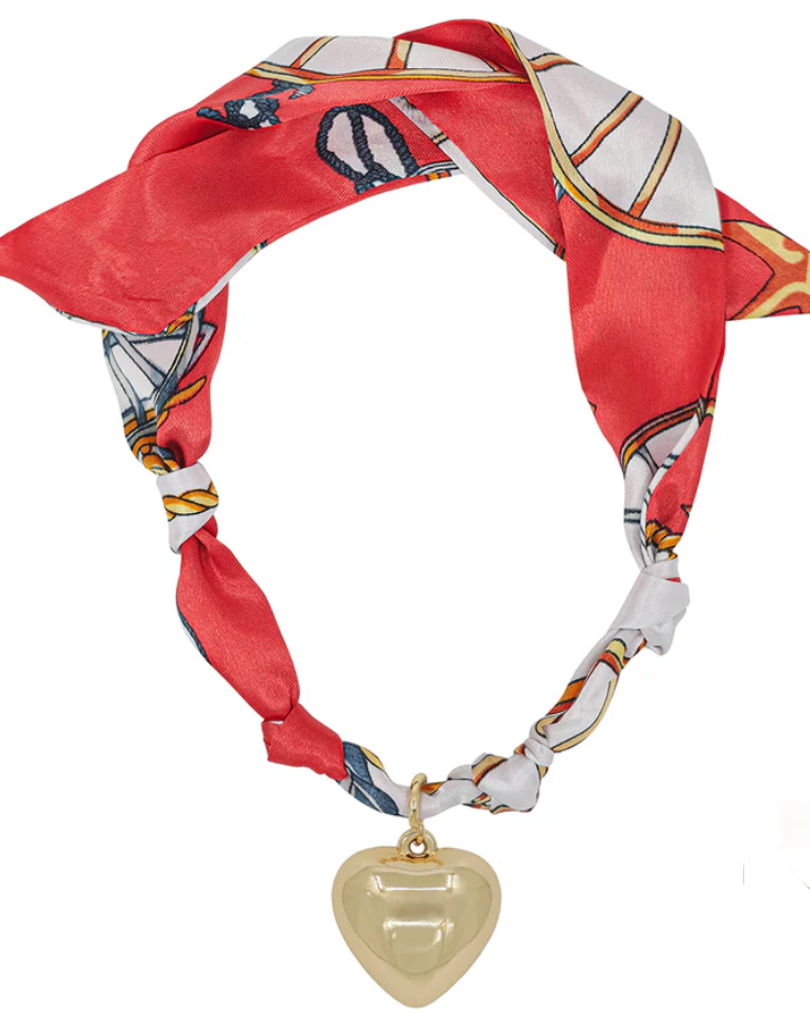 The adorable necklace features a knotted scarf fabrication with a charm attached. On trend and so chic!
