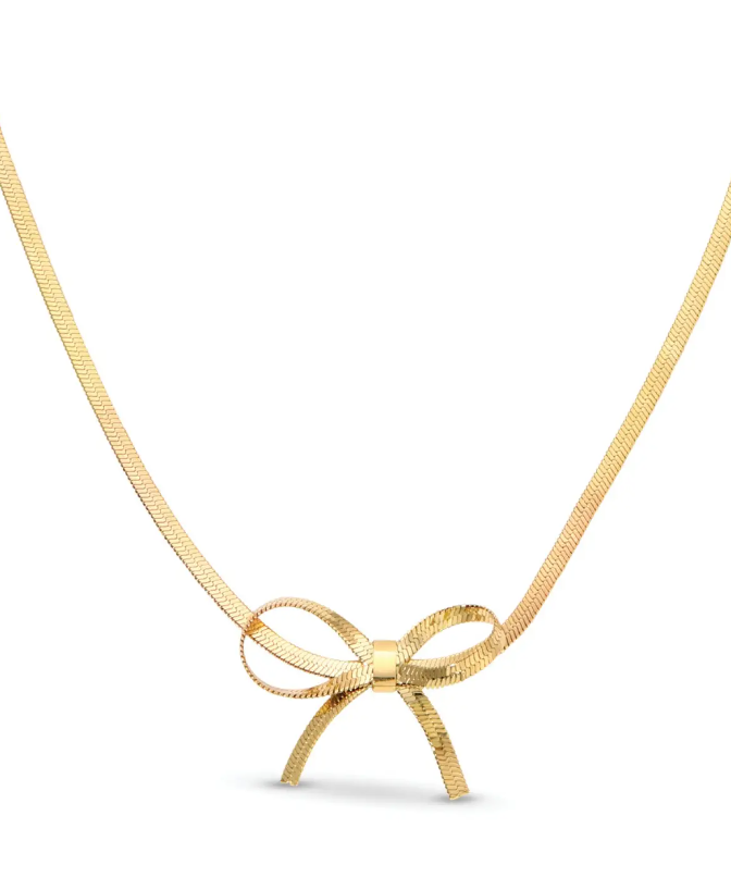 Step up your style game with this delicate bow necklace, featuring a delicate herringbone chain and a charming bow.