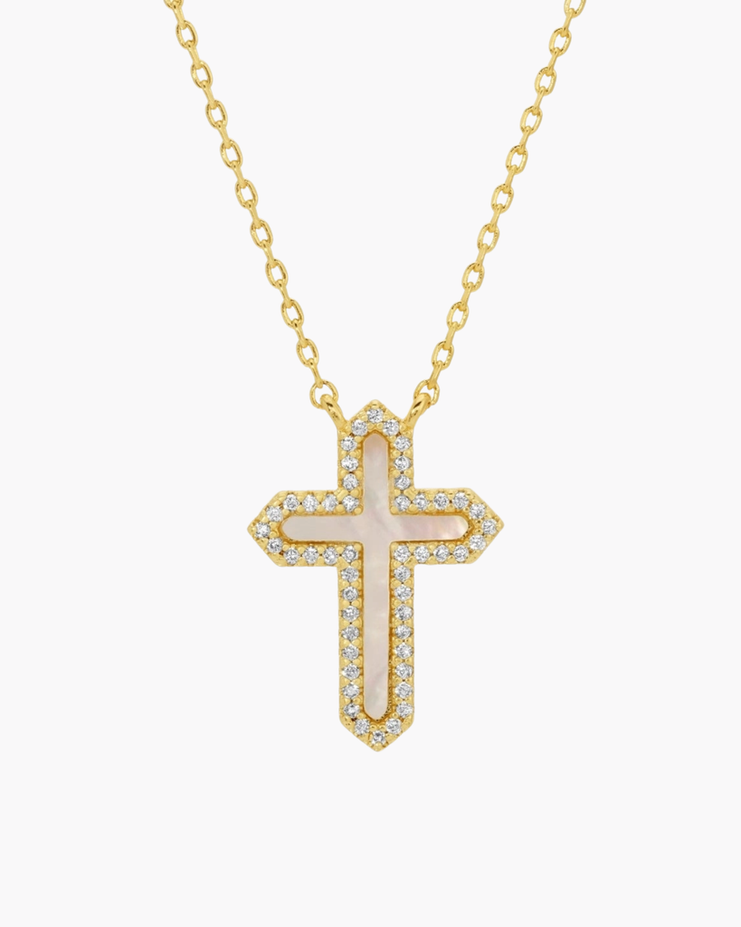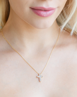 Sparkle with purpose in this playful Cross Necklace. Featuring a radiant cross shell pendant adorned with cubic zirconia, it's a chic way to celebrate faith and carry reminders of strength and hope wherever you go.