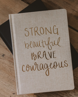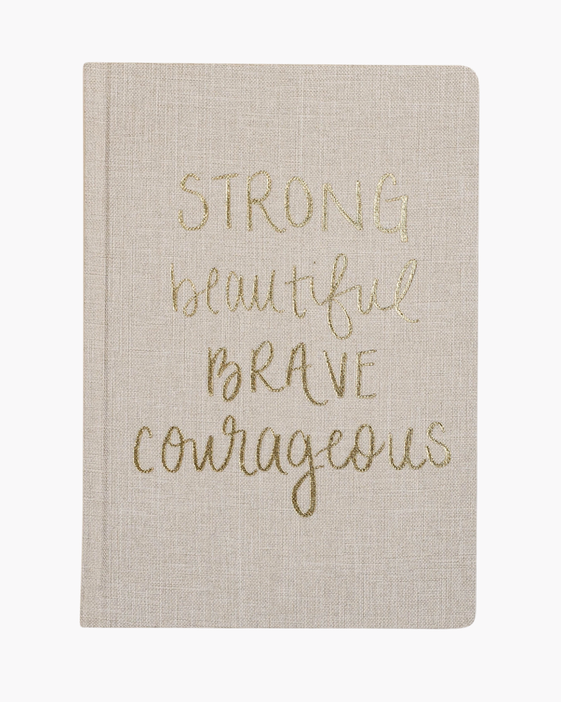 Let your dreams take flight in our hand-lettered Strong Beautiful Brave Courageous fabric notebook, styled in tan and gold for a touch of flair. This fun and easy-to-write-in journal is perfect for capturing your bright ideas, inspiring quotes, and to-do lists—ideal for school, work, or gifting!