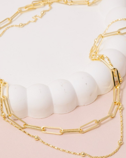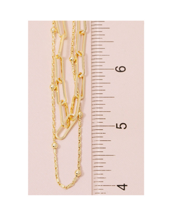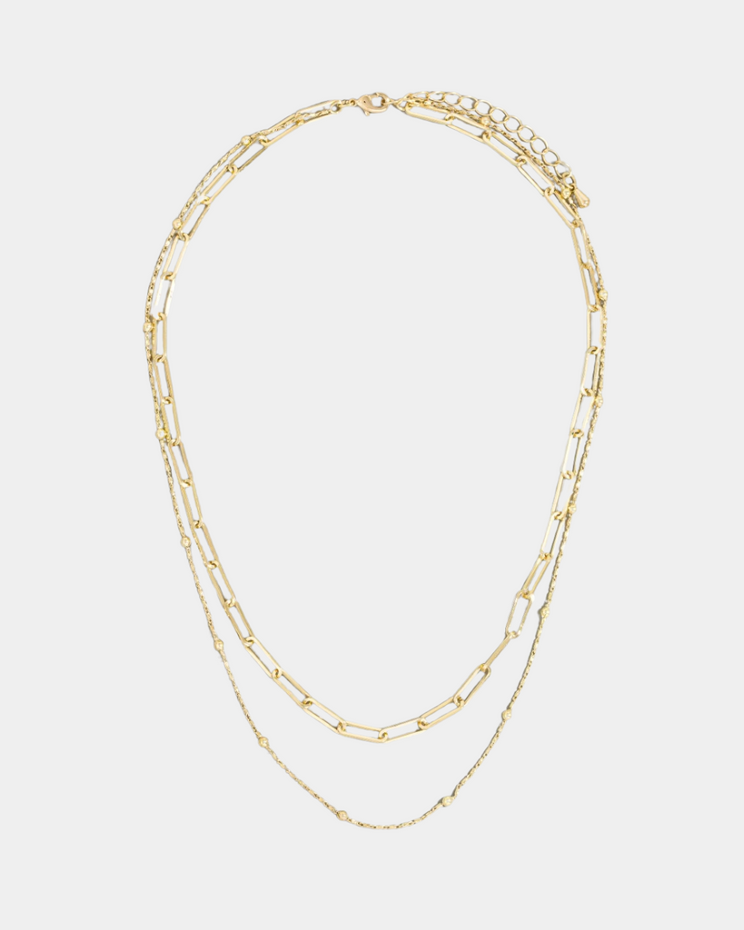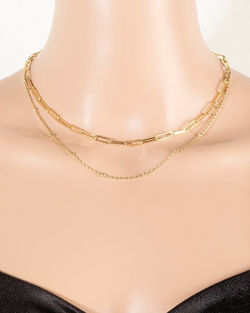 This delicate chain necklace showcases a distinctive mixed layered design. Highlight your individuality with this piece that elegantly conveys your personal style.