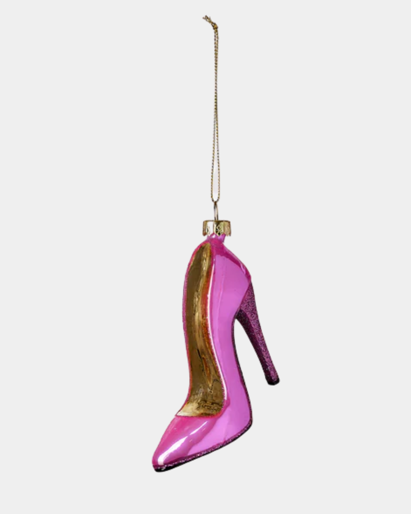 Strut into the holidays with this sassy glass High Heel Ornament! It's the perfect sparkle for your tree with a touch of glam.