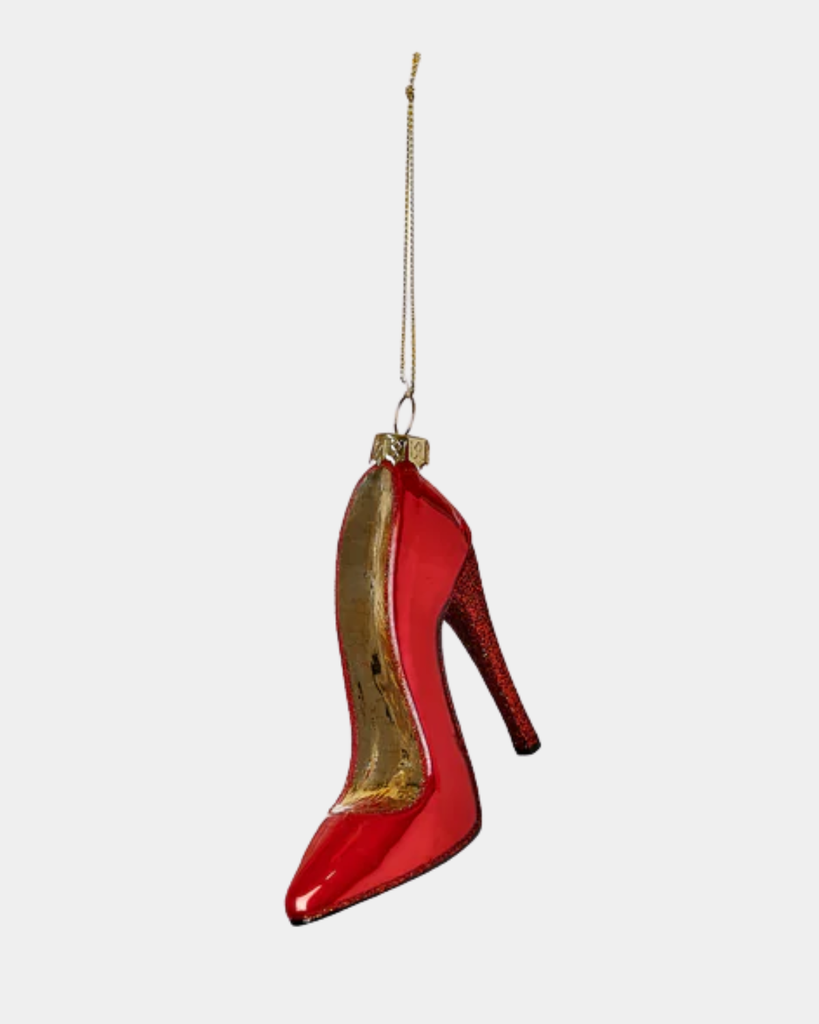 Strut into the holidays with this sassy glass High Heel Ornament! It's the perfect sparkle for your tree with a touch of glam.