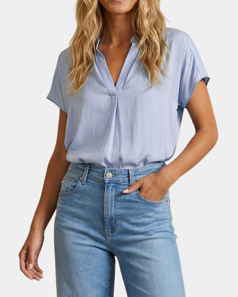 Crafted in a stunning halogen blue, this drop shoulder blouse combines relaxed comfort with refined style. The lightweight, breathable fabric moves with you throughout your day, while the understated design pairs beautifully with everything in your wardrobe.