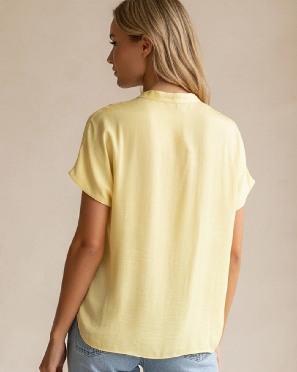 Crafted in a stunning pale banana, this drop shoulder blouse combines relaxed comfort with refined style. The lightweight, breathable fabric moves with you throughout your day, while the understated design pairs beautifully with everything in your wardrobe.