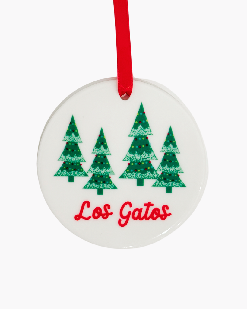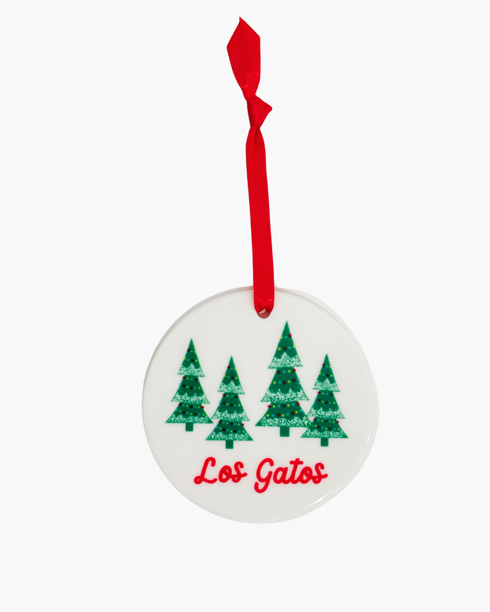 Cuddle up to holiday nostalgia with this whimsical ceramic ornament straight from Los Gatos! Whether you're a local missing home or gifting someone who loves California vibes, this personalized piece brings cozy, small-town magic to your tree.
