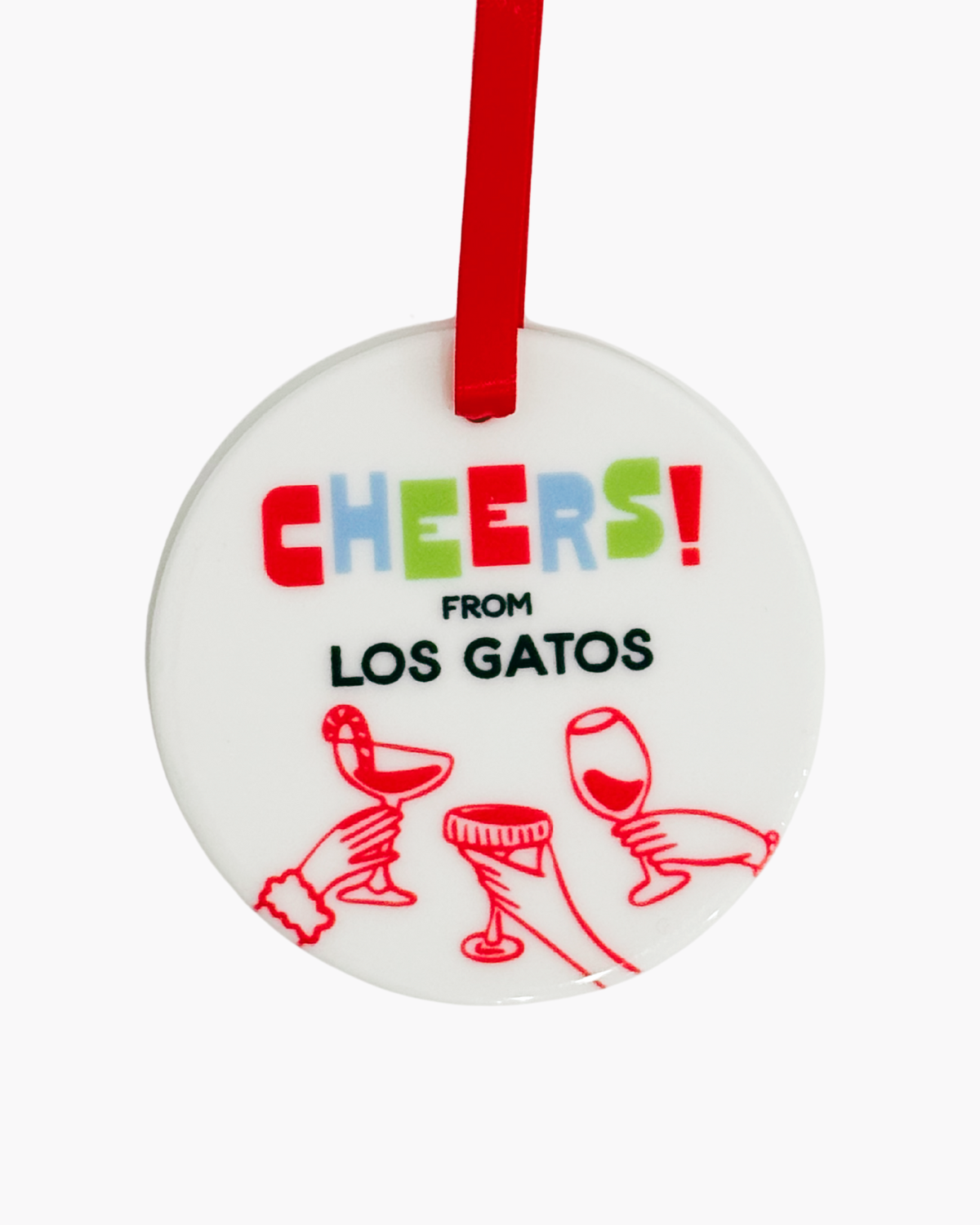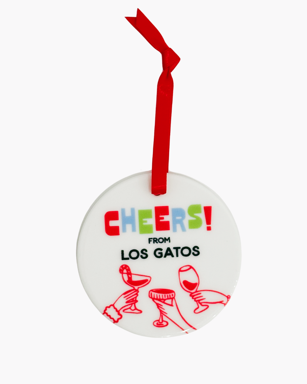 Cuddle up to holiday nostalgia with this whimsical ceramic ornament straight from Los Gatos! Whether you're a local missing home or gifting someone who loves California vibes, this personalized piece brings cozy, small-town magic to your tree.