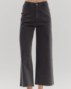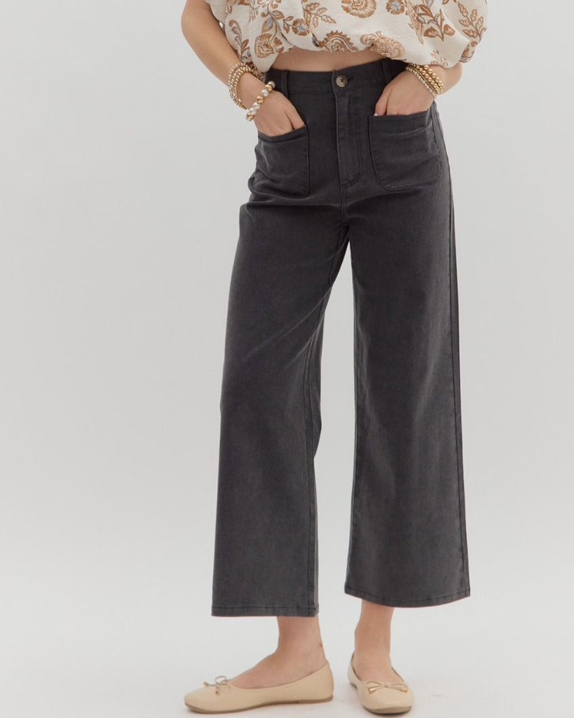 These solid high waisted pants feature wide legs and pockets at the front. The perfect go-to pair pants to wear year round. Comfy and so chic!