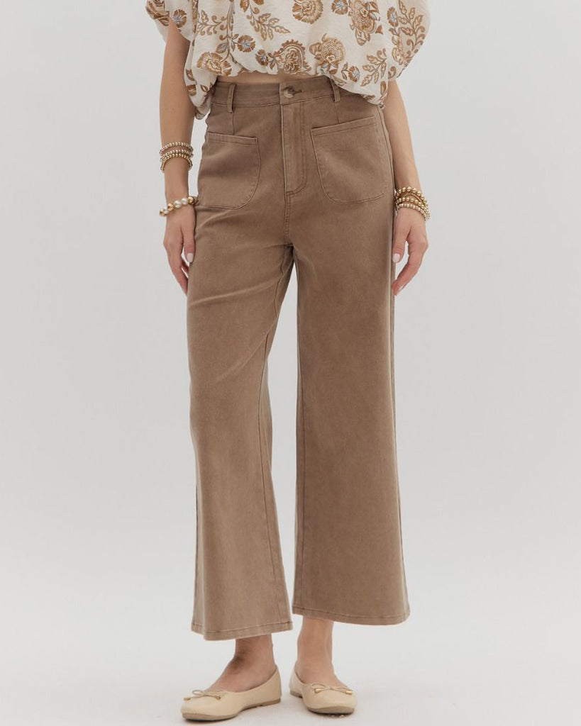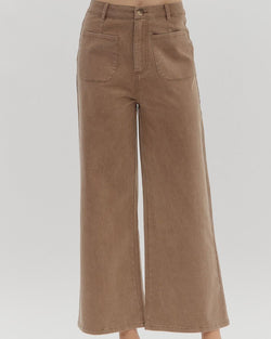 These solid high waisted pants feature wide legs and pockets at the front. The perfect go-to pair pants to wear year round. Comfy and so chic!