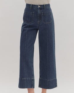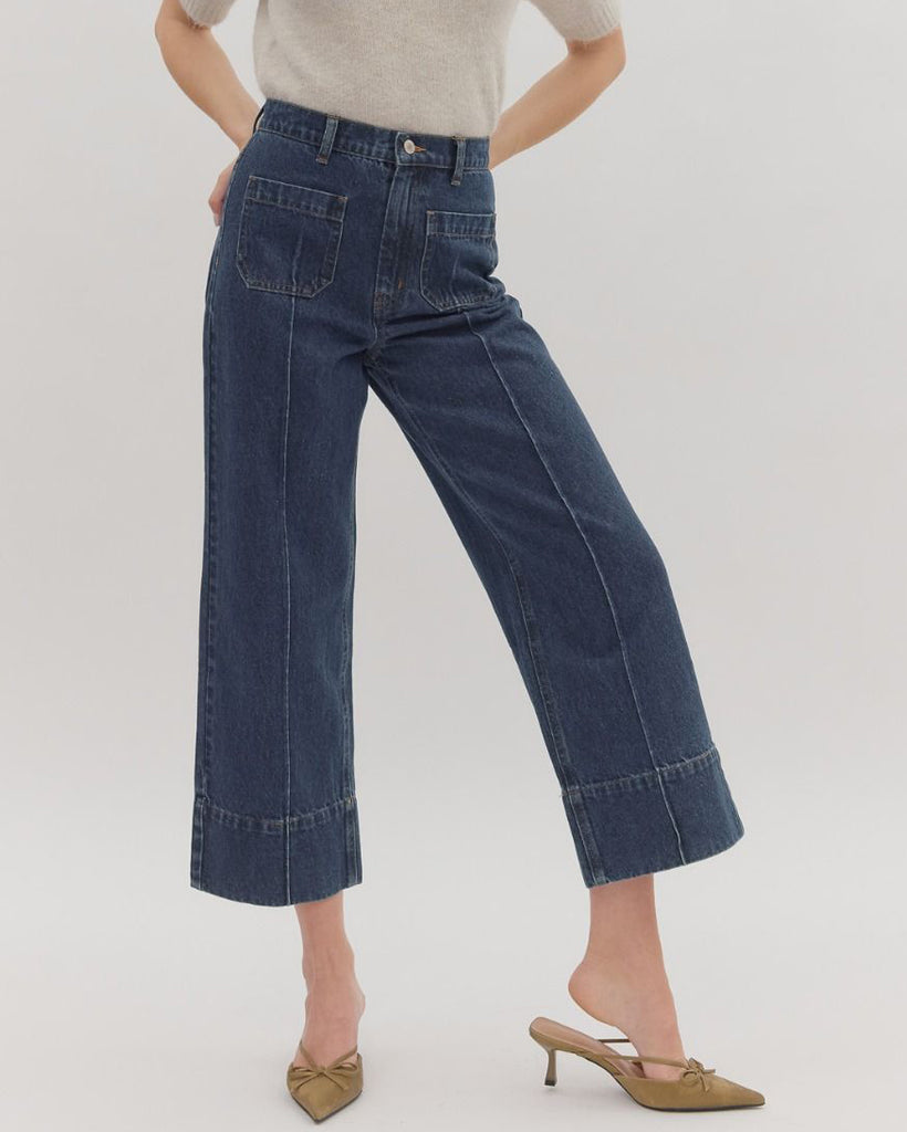 These solid wide-leg ankle-length pants feature a wide cuff hem, button fly-front zipper closure and pockets at the front and back. The seam detail add a touch of glam to these must have bottoms that be can be worn day or night.