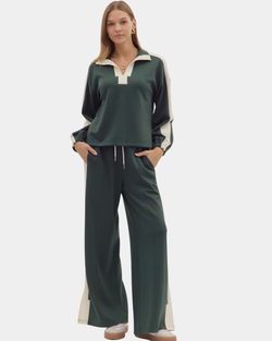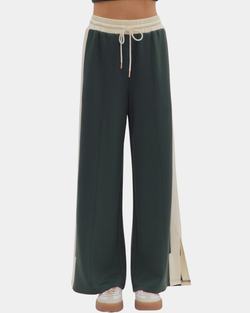 Effortlessly chic wide leg knit pants in dark green with a comfy elastic waistband and drawstring. The relaxed fit is perfect for lounging or styling up—grab the matching top to complete your cozy-cool look!