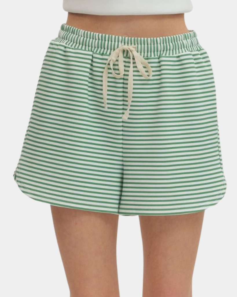 Cute striped shorts with an adjustable drawstring waist—perfect for laid-back days when comfort meets style. The elastic waistband keeps everything in place while you move, making these a go-to pick for casual outings or relaxing at home.