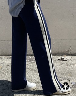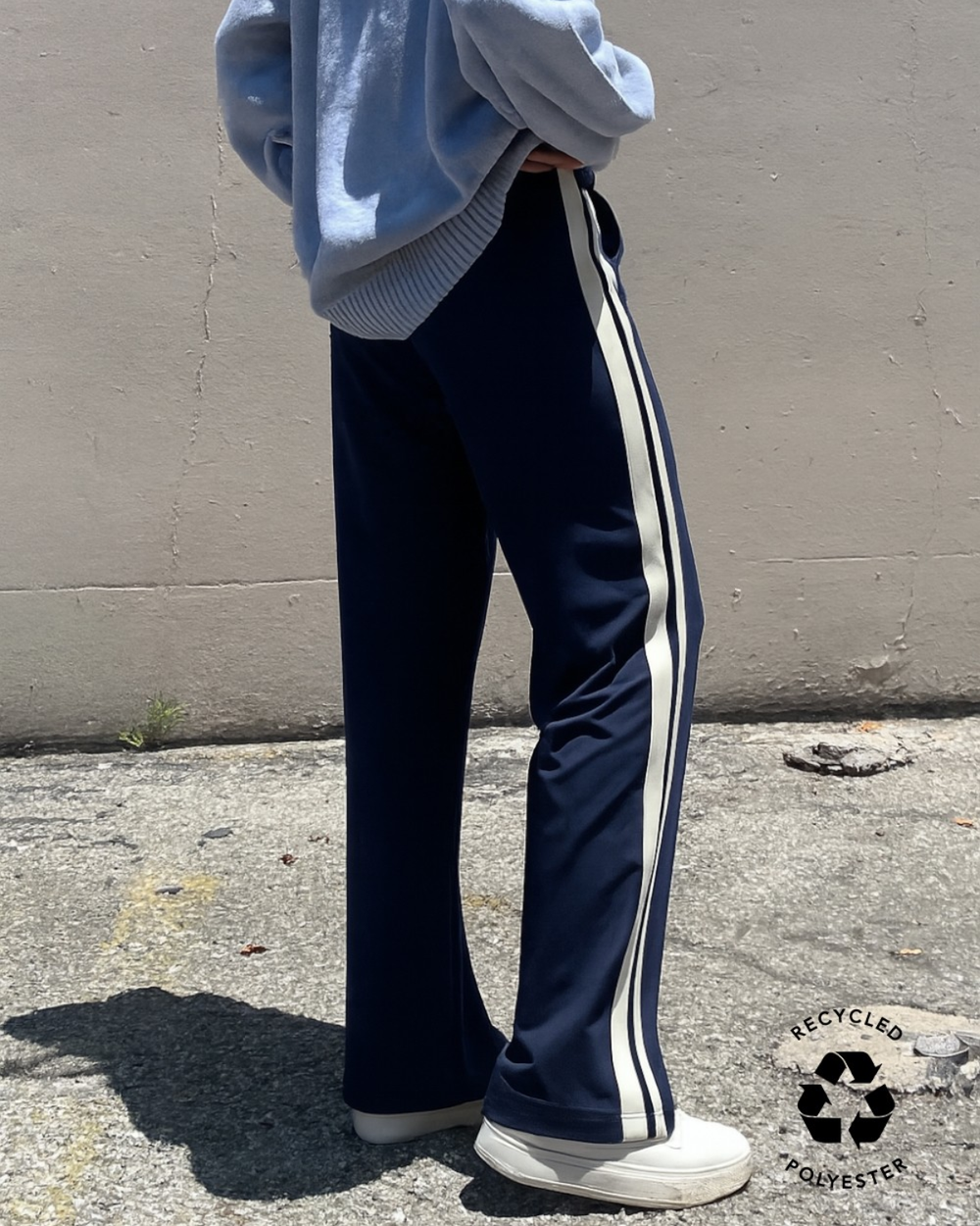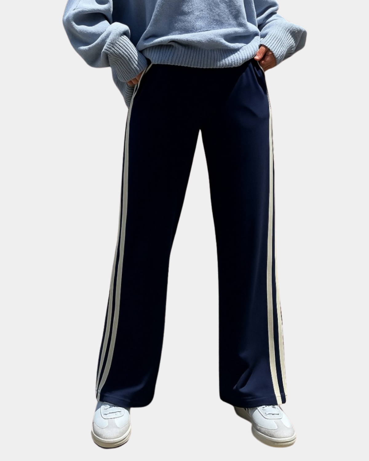 These straight-leg pants crafted from luxuriously soft fabric offer four-way stretch and refined side stripe accents, delivering a sleek, sporty elegance ideal for both active pursuits and relaxed occasions.