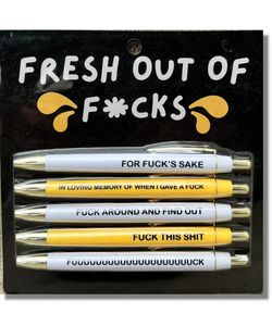 Funny set of 5 black ink ballpoint pens, each quote below: