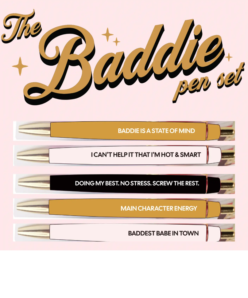 Set of 5 black Ink Ballpoint Pens- BADDIE IS A STATE OF MIND I CAN'T HELP IT THAT I'M HOT AND SMART DOING MY BEST, NO STRESS, SCREW THE REST MAIN CHARACTER ENERGY BADDEST BABE IN TOWN