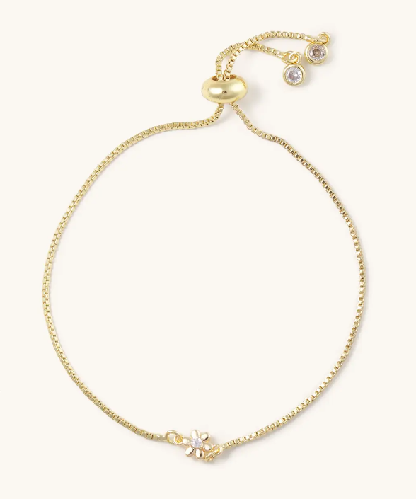 This mini flower slider bracelet is the perfect accessory for adding a touch of whimsy to any outfit. Its adjustable design allows for easy customization and comfort, while the delicate flower charm adds a playful and lighthearted element. Embrace your inner flower child with the Ari Gold Slider Bracelet!