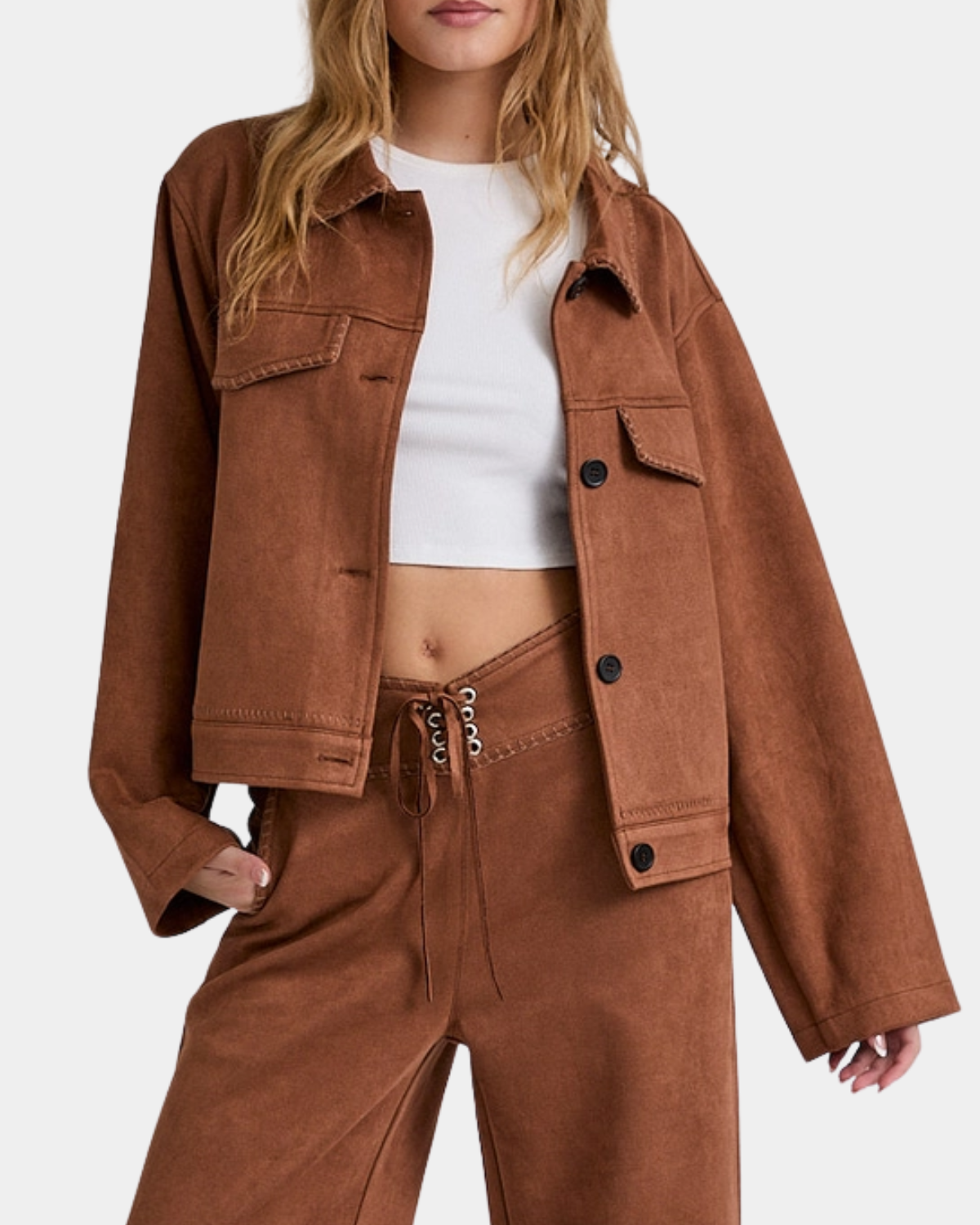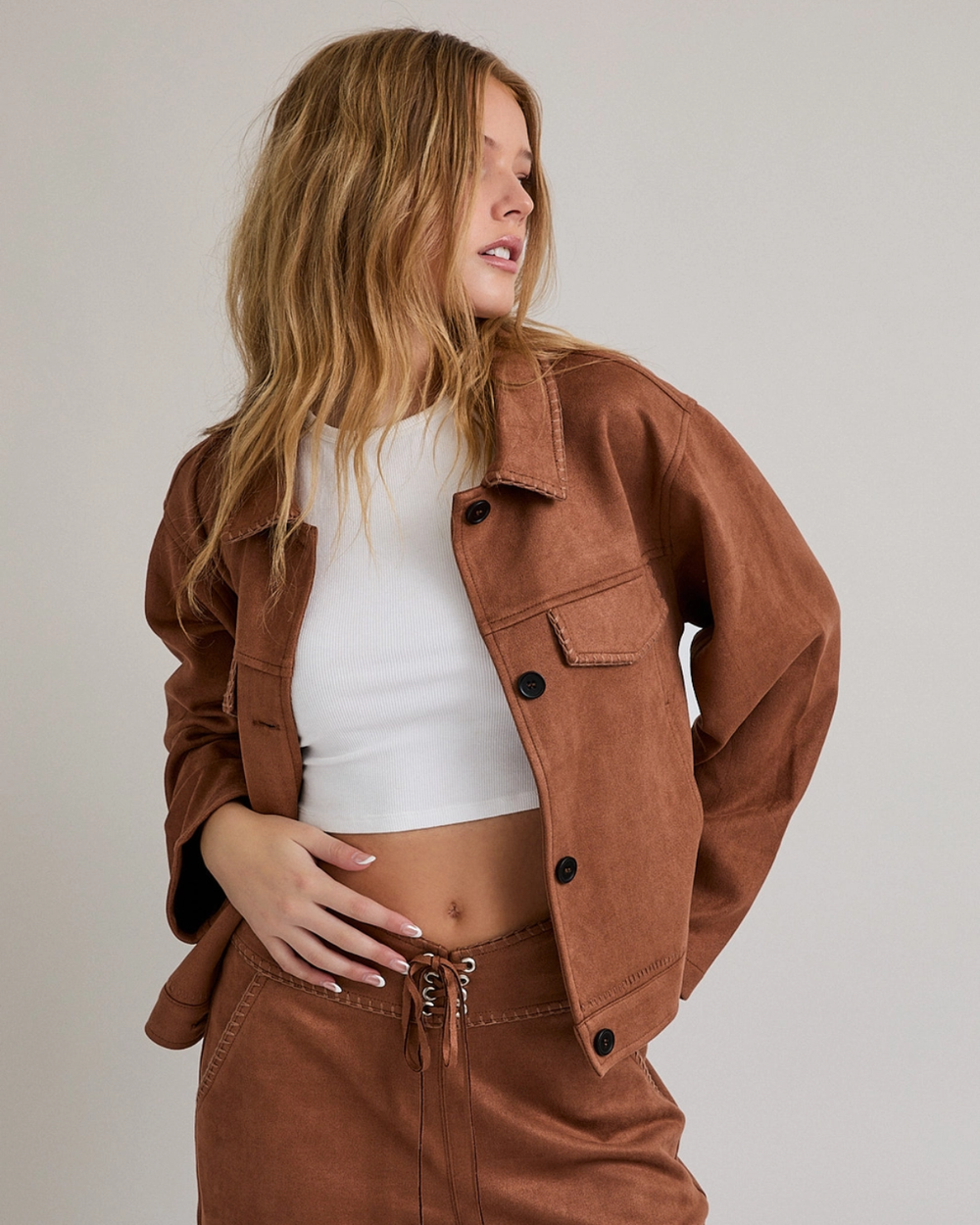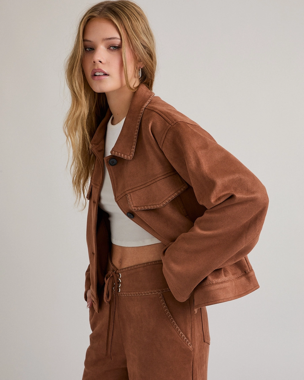 This brown suede jacket is your new go-to for effortless cool. Luxe suede paired with playful braided details creates a look that's equal parts cozy and fashion-forward.