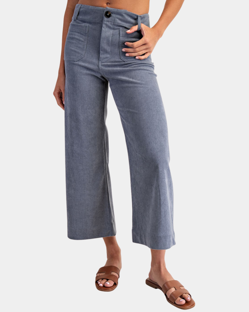 Vintage vibes meet modern comfort in these steel blue corduroy pants. Oversized patch pockets front and back give you serious storage and retro charm, while the straight leg cut keeps things effortlessly cool.