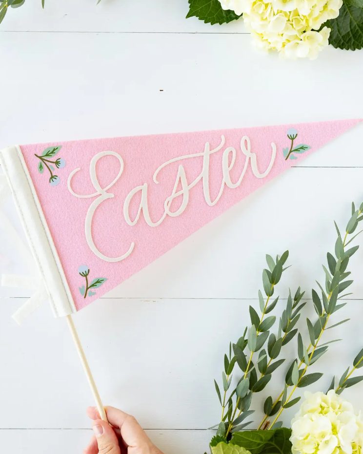 Get ready for a hoppy Easter with our Pink Easter Felt Pennant Banner! This pink felt banner features the words "happy easter" in fun, playful letters. Hang it up for a festive touch to your Easter decorations.