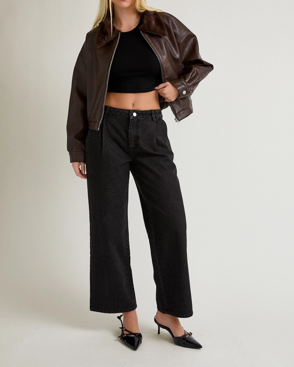 Classic black mid-rise denim that hits just right. Comfortable enough for all-day wear, versatile enough to dress up or down, and timeless enough to become a closet staple. The perfect pair you'll reach for again and again.