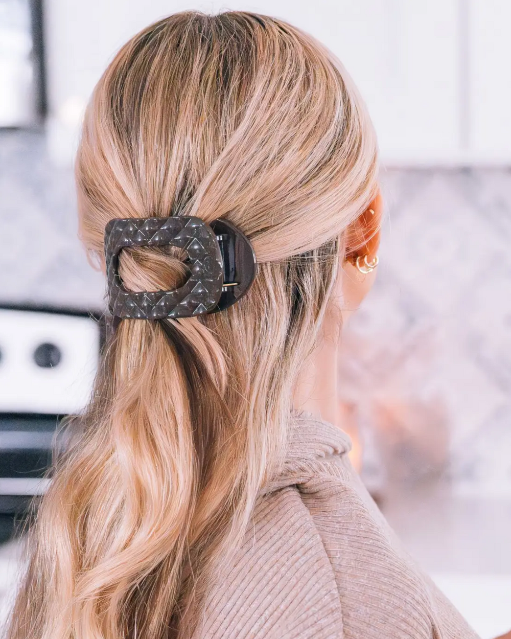 Kick back and chill with the Truly Taupe Quilted Medium Flat Round Hair Clip, made for stylish comfort whether you’re doing yoga or lounging. Built from nearly unbreakable material, it’s your new go-to for effortless laid-back vibes.