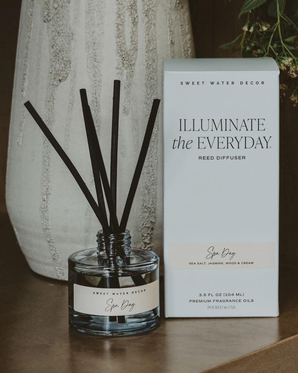 Spa Day reed diffuser combines sea salt, jasmine, wood, and cream into a calming fragrance experience. The minimalist beige glass design suits any décor while delivering months of continuous scent without flames or upkeep. Simply add reeds and let this trusted favorite create an instant sanctuary atmosphere in your space.