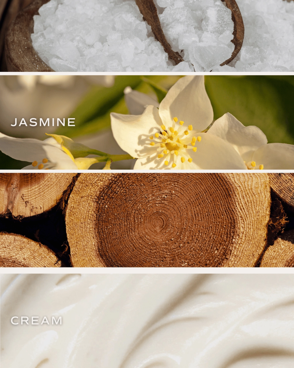 SCENT NOTES: Top: Sea Salt, Jasmine / Middle: Wood / Base: Cream