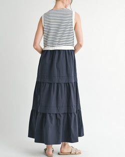 Twirl into elegance with our Navy Tiered Maxi Dress! This playful mixed-fabric beauty cascades in gorgeous tiers that dance with every step. Perfect for summer soirées or beachside strolls, it combines comfort and style for that effortlessly chic look. The deep navy hue works magic from day to night – just switch your accessories and you're ready for whatever adventure awaits!