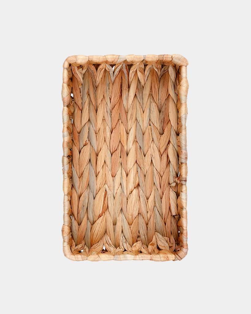 Elevate your dining experience with this refined guest napkin tray crafted from genuine hyacinth. Its natural hues and timeless style complement a variety of interior settings gracefully.
