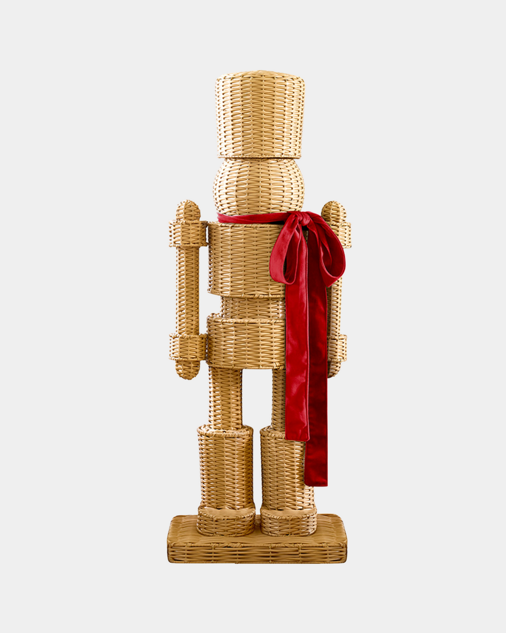 Celebrate the season with our 48" tall Nutcracker, handwoven from weather-resistant rattan and finished with a festive velvet tie. This charming piece adds a playful, modern twist to holiday décor, perfect for porches, fireplaces, or beside the Christmas tree. Built to last and spread joy year after year, it’s the ideal accent for any festive gathering or display.