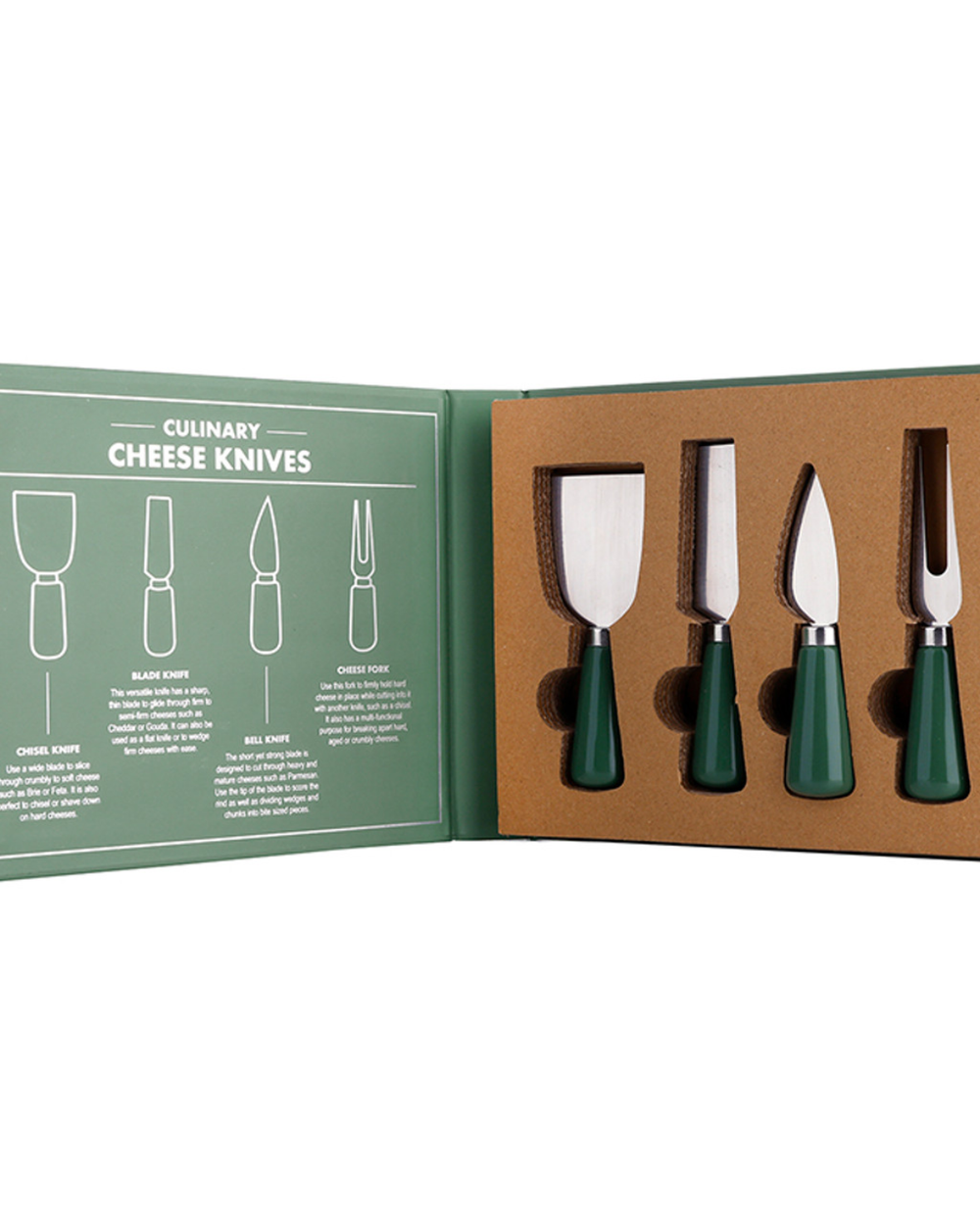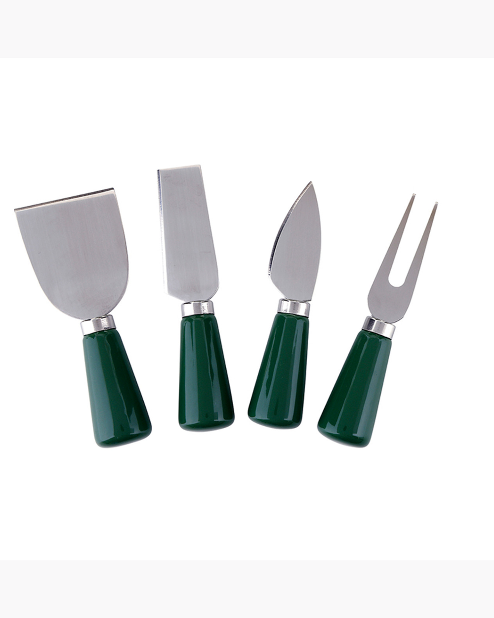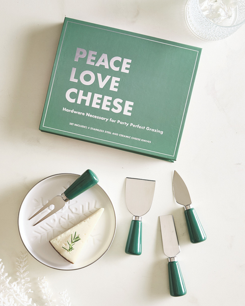Calling all cheese devotees! This charming four-piece collection features a ceramic and stainless steel fork paired with three specialized knives—bell, blade, and chisel—to tackle any cheese board challenge.