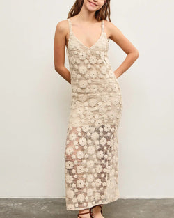 Get ready to turn heads in our Crochet Maxi Dress in Natural! This beautiful dress features intricate crochet details that will make you stand out in any crowd. Perfect for a romantic date or a day at the beach, this dress is the perfect addition to your wardrobe. Made with high-quality materials, it offers both style and comfort. Order now and be the envy of all your friends!