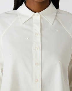 Elevate your wardrobe with this timeless antique white blouse featuring a classic button-down design. The collared neckline and long sleeves offer sophisticated style, while delicate pearl accents add an elegant finishing touch. Perfect for layering or wearing solo, this versatile piece transitions seamlessly from office to weekend occasions.