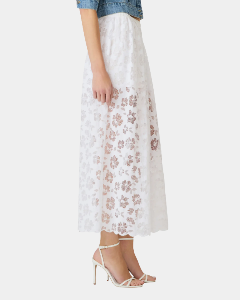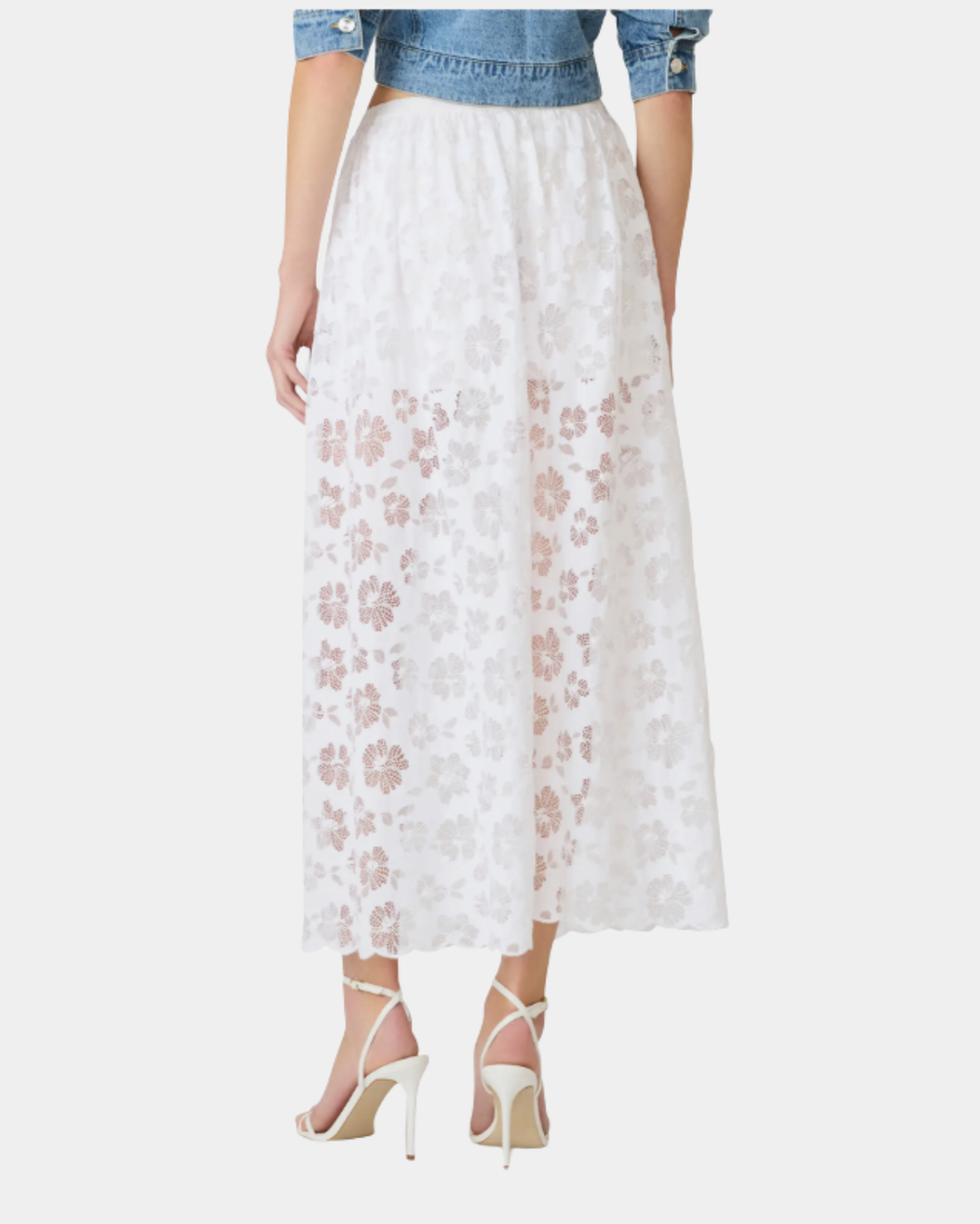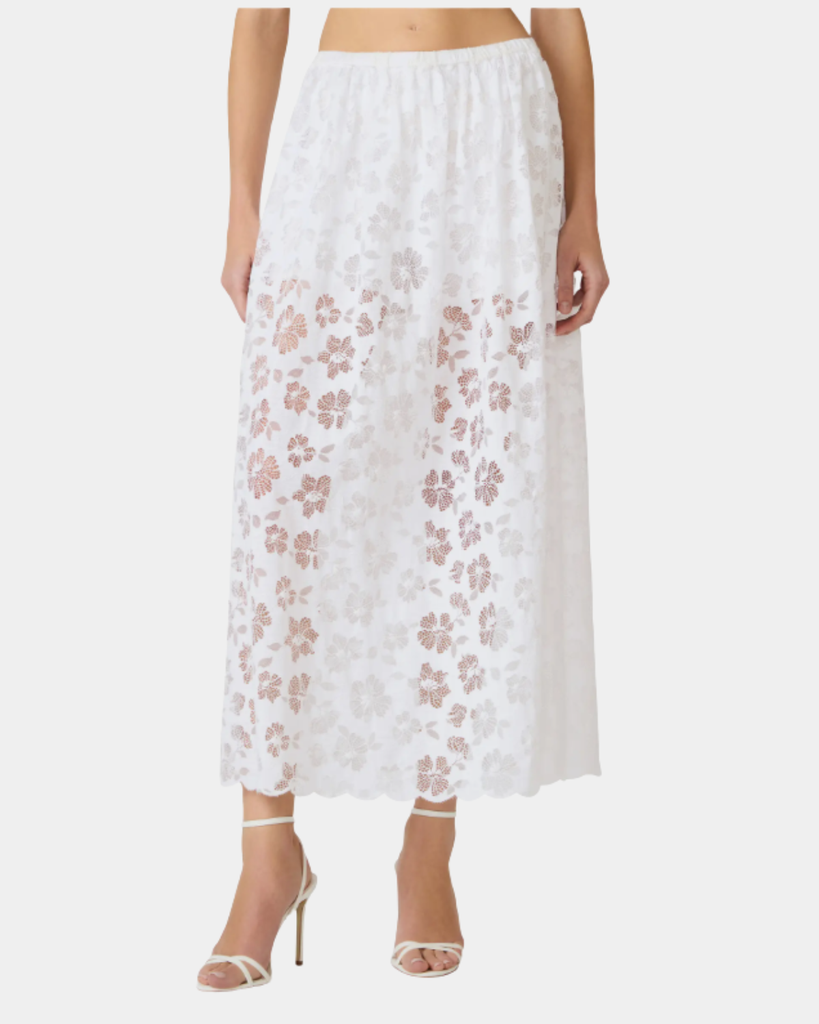 Romantic lace detailing adorns this flowing maxi skirt, crafted from a breathable cotton blend with an easy elastic waistband for all-day comfort and effortless style.