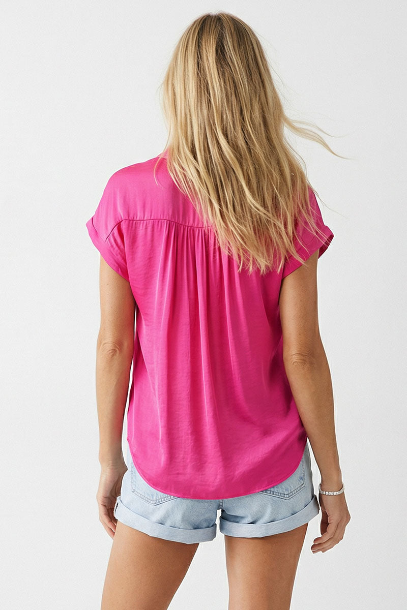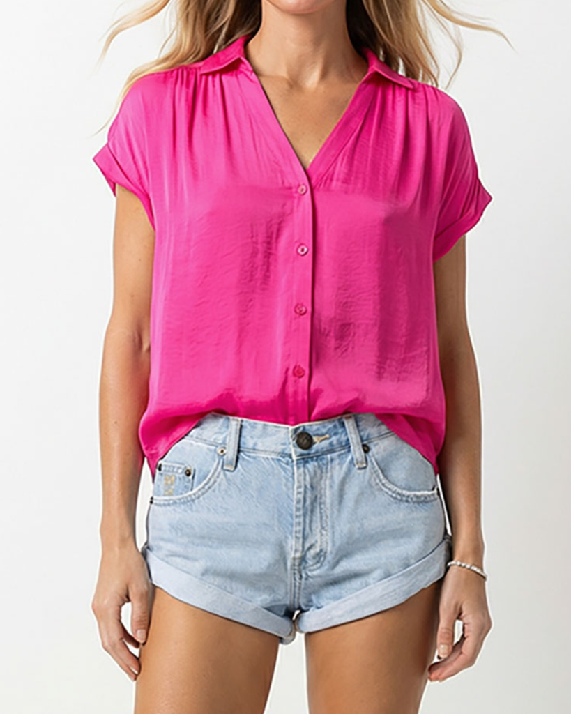 Short Sleeve Blouse - Hot Pink