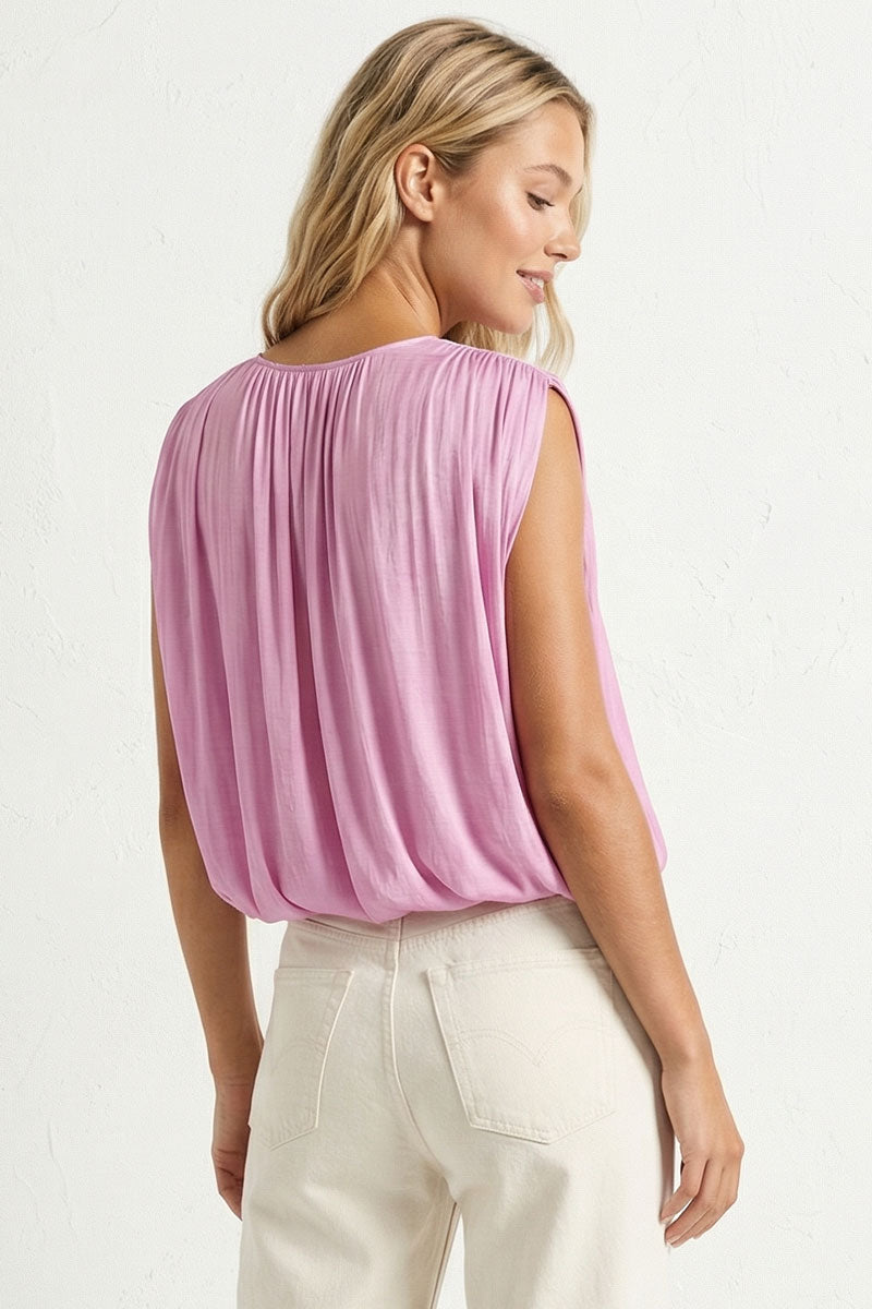 Effortless elegance meets playful style with the Grecian Drape Bubble Blouse. The draped neckline and bubble hem create a flattering silhouette that works from brunch to dinner. Versatile, chic, and ready to become your new favorite piece.