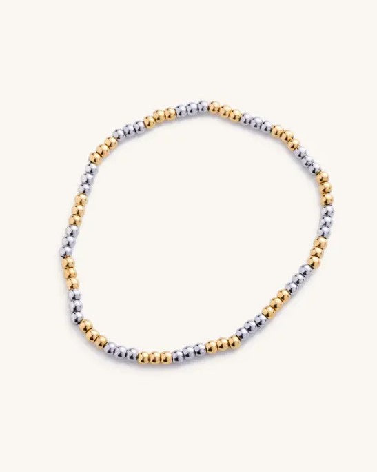 Add some shimmer to your wrist with our Small Two Toned Ball Bracelet! With a mix of gold and silver, this quirky bracelet is perfect for adding a touch of playfulness to any outfit. Don't be afraid to mix metals - it's all the rage!