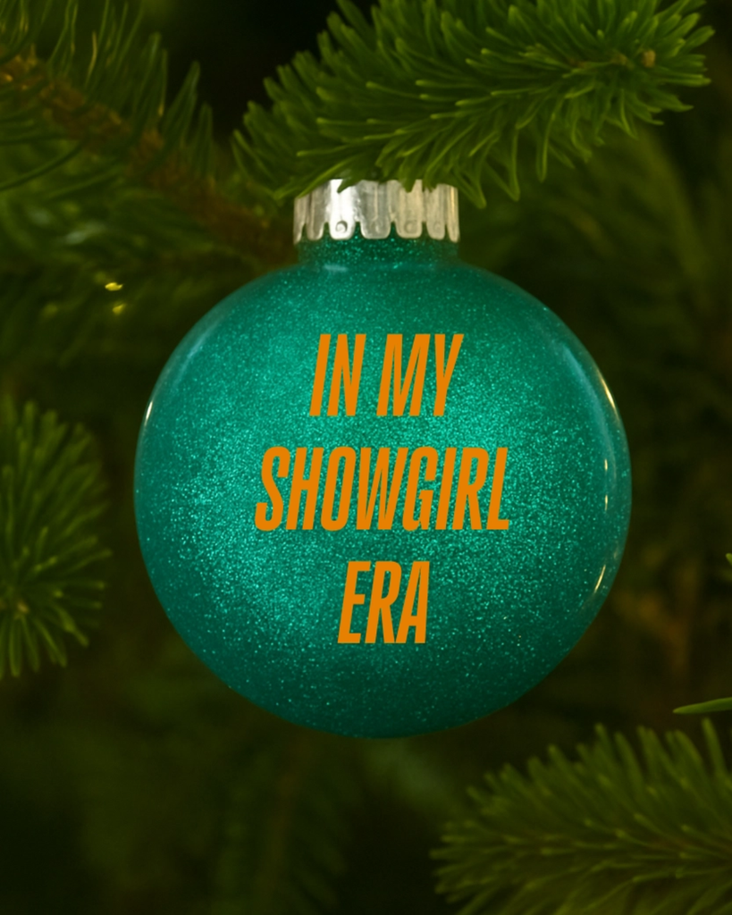 Add a splash of sparkle to your holiday with the Showgirl Era Glitter Ornament in vibrant teal. This playful gem brings a dazzling retro vibe that makes any tree shine with vintage charm.