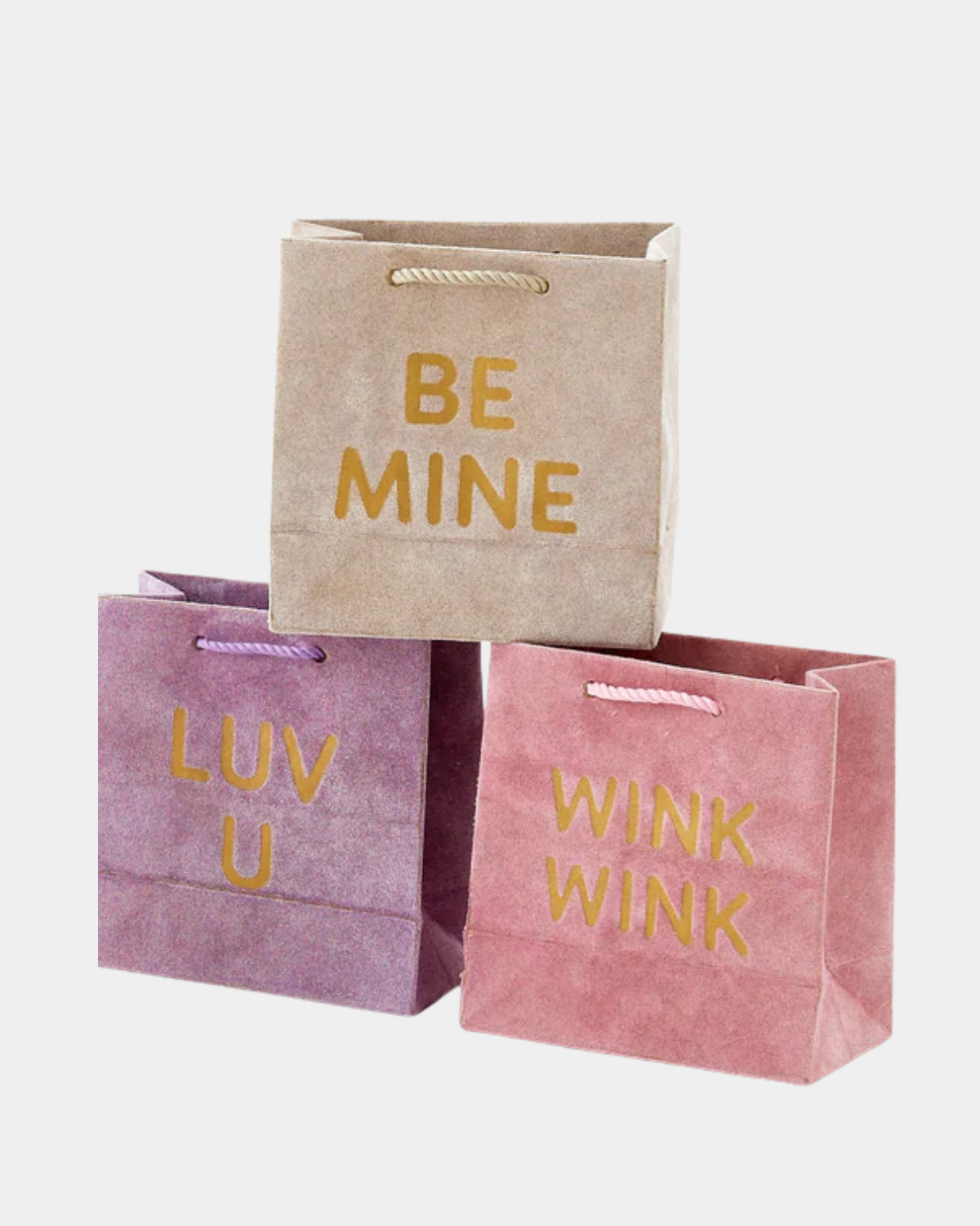 Wrap up your sweetest moments in style! These flocked gift bags feature playful conversation heart designs in four fun styles. The soft, fuzzy texture adds a delightful tactile touch that makes gifting extra special.