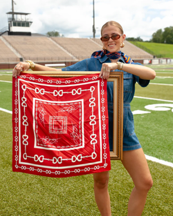 Add a touch of whimsy to your outfit with this hand-drawn silk scarf featuring a playful maroon and white horse bit design by Kara Beth Neighbors. Lightweight and vibrant, it’s perfect for twirling, tying, or turning heads wherever you go!