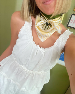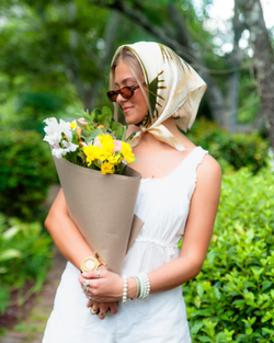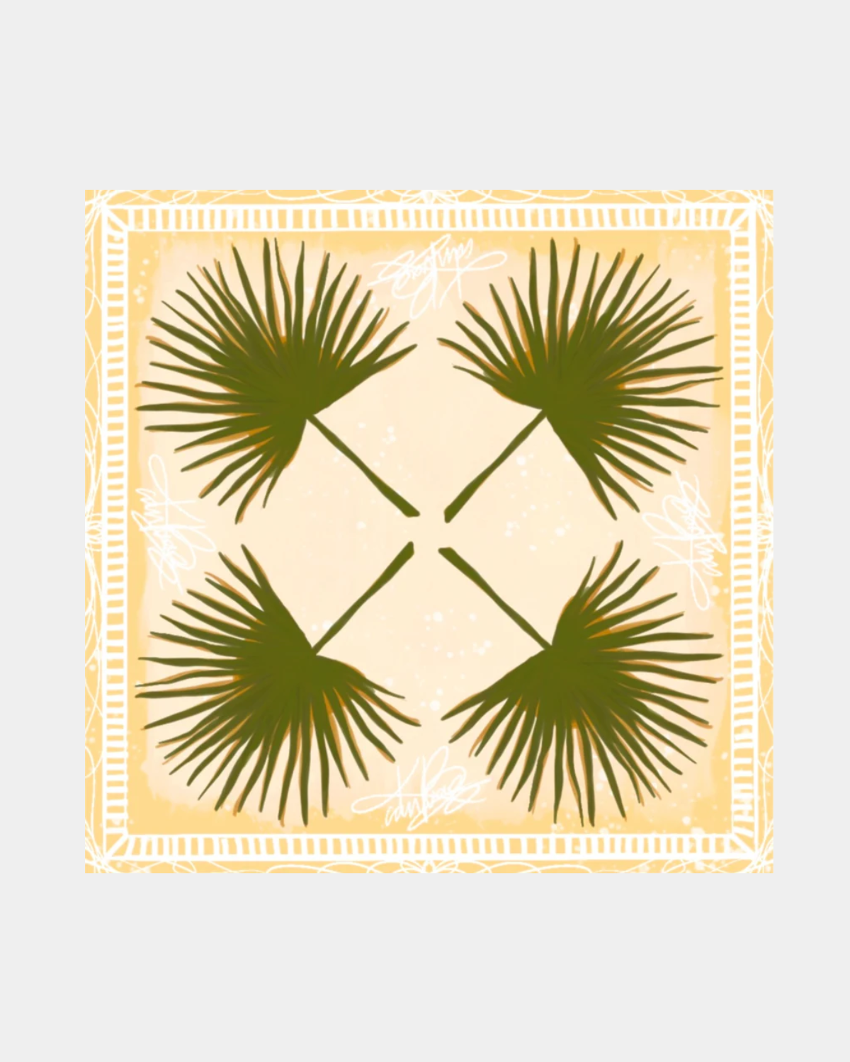 Add a touch of whimsy to your outfit with this hand-drawn silk scarf featuring a playful Palme design by Kara Beth Neighbors. Lightweight and vibrant, it’s perfect for twirling, tying, or turning heads wherever you go!