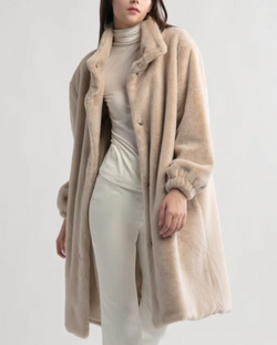 Stay cozy and stylish in our Shearling Stand Collar Coat! Featuring a soft and warm shearling lining and a chic stand collar, this beige coat will be your favorite go-to for chilly days. So go ahead, embrace the cold with a touch of quirky flair.
