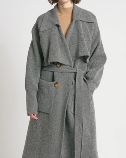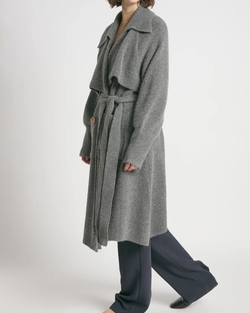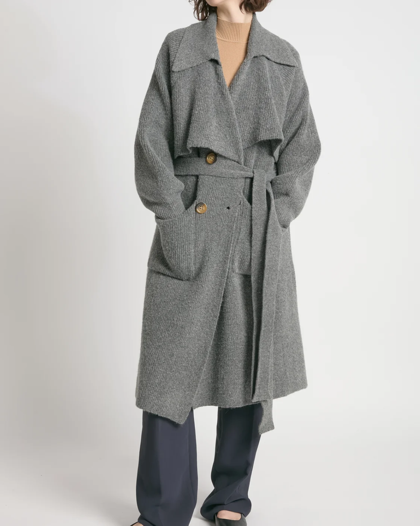 Elevate your outerwear with this trench cardigan coat, featuring elegantly flared balloon sleeves for a refined silhouette. Its sleek design offers a perfect balance of comfort and sophistication for any occasion.