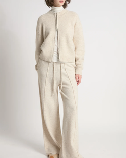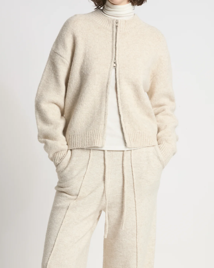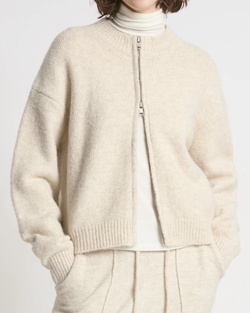 Cropped Zip-Up Cardigan - Beige