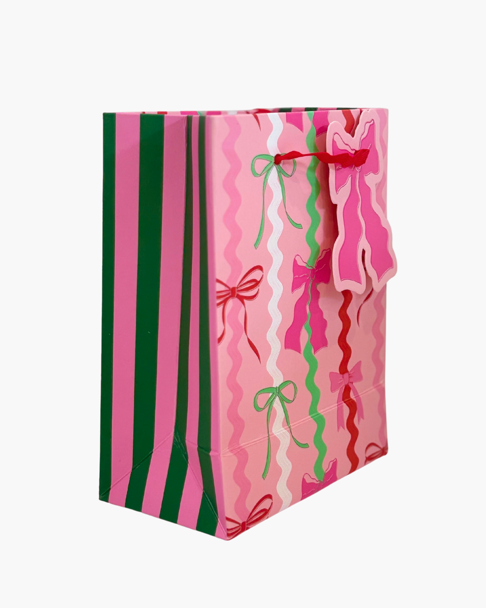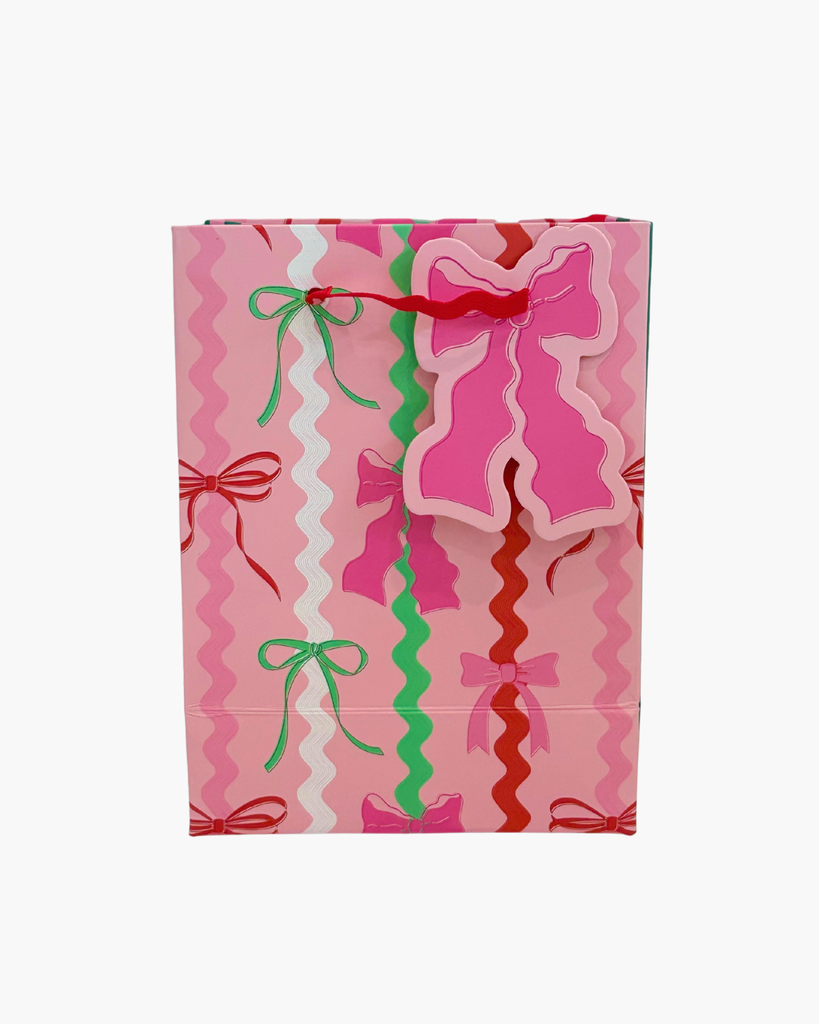 Cheers to stylish gifting! This playful Holiday Ric Rac Bows gift bag comes with a bow tag and pairs perfectly with our festive tissue paper collection. Make your presents pop.