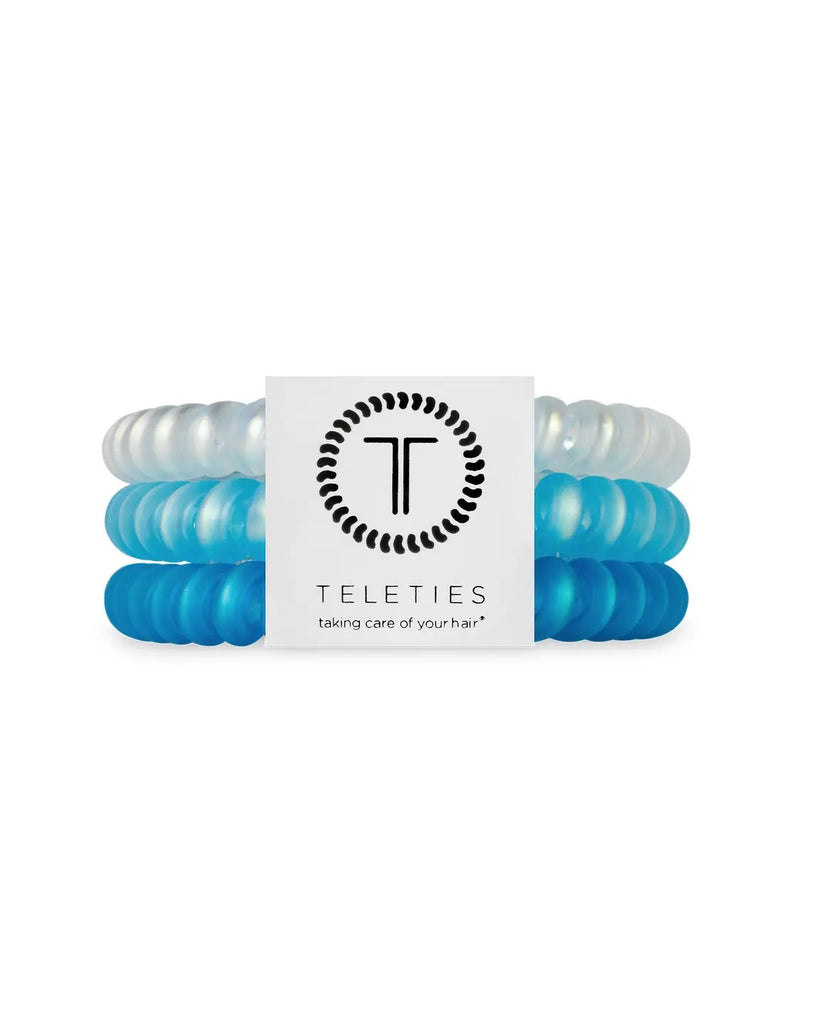 Hold your hair in place with ease and style! TELETIES Blue Seas Small Hair Ties offer a strong grip without damage, doubling as a chic wrist accessory when not in use. Your new favorite hair essentials for Spring Break and Summer! Strong grip, no rip design for all-day hold Doubles as a stylish bracelet Durable and waterproof for all occasions Gentle on hair—prevents breakage, headaches, and creases These are perfect hair accessories for workouts, everyday wear, or bedtime to prevent hair damage. Upgrade your hair game with TELETIES - functional, fashionable, and made for every moment.